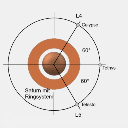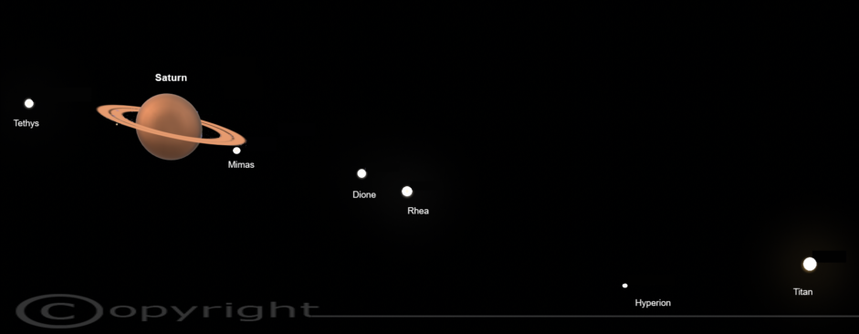Saturn Monde Titan, Mimas, Dione, Rhea, Hyperion und Tethys Stand 2024-11-24 20 Uhr 45 Minuten
